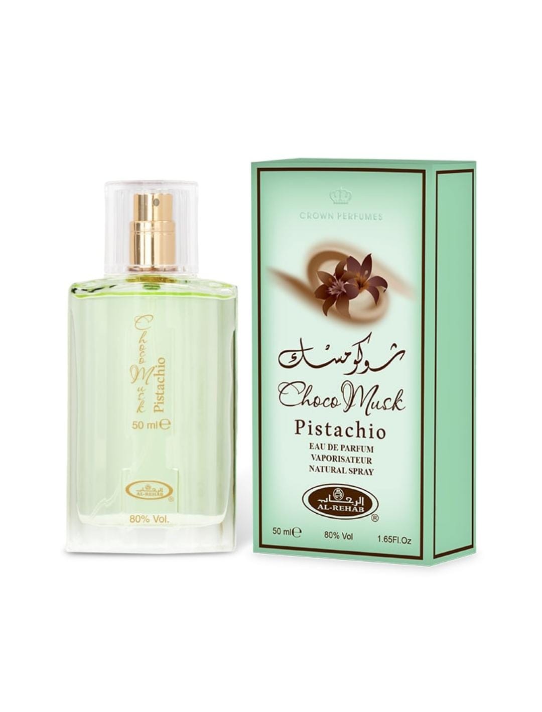 Choco Musk Pistachio by Alrehab is a gourmand–fruity fragrance that blends sweetness and freshness in an appealing way. It opens with refreshing bergamot combined with rich toffee, raspberry, and peach, creating a bright and delicious introduction. The heart reveals a soft almond note that adds warm, balanced depth, while the base settles into creamy vanilla, leaving a sweet, smooth, and comforting trail that lasts.